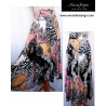 Amelia - Spódnica szeroka, tańczącą z wydłużonym tyłem oraz rozporkiem na prawej nodze z przodu oraz z tyłu. Przepiękna dzianina w duży abstrakcyjny wzór w niezwykłych barwach.